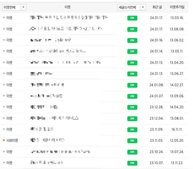 네이버 계정 블로그 이웃/서로이웃 목록인데..