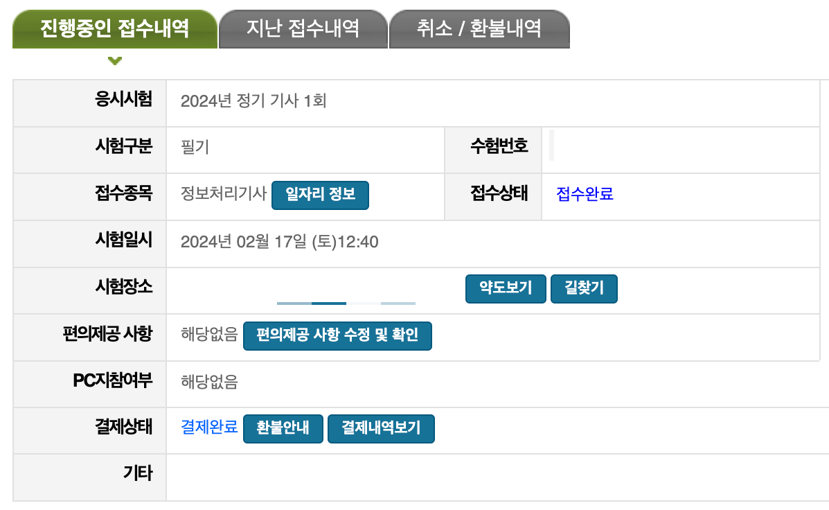 다시 무통장으로 결제했더니 인원 초과래서 같은 시간 다른 시험장으로 다시 접수하고... 🥲