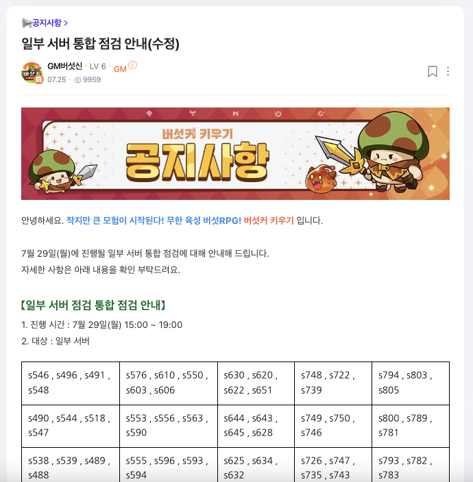 서버 통합 공지)