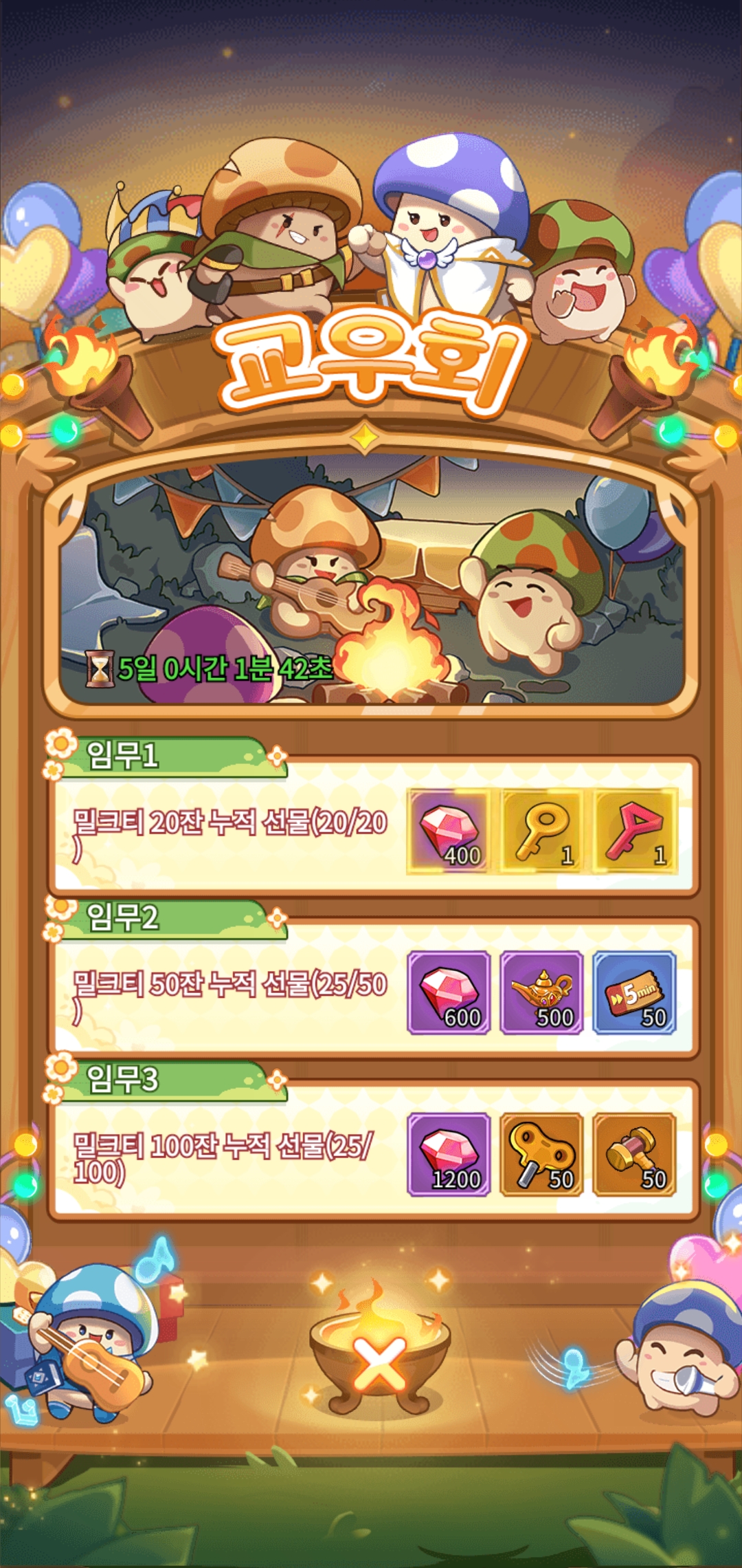 5. 120 찍으니까 버섯 무술대회라는 컨텐츠가 열렸다. 와 내가 모르는 고인물 컨텐츠가 남아있었구나 싶어서 신기했다.