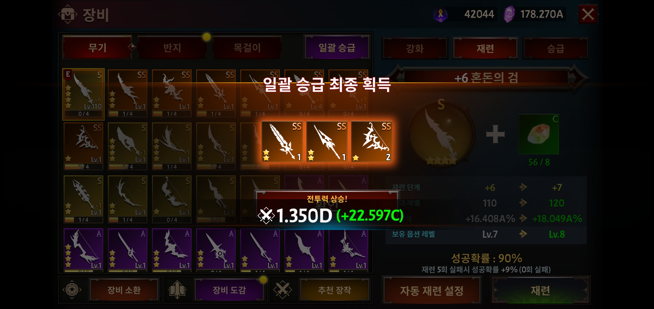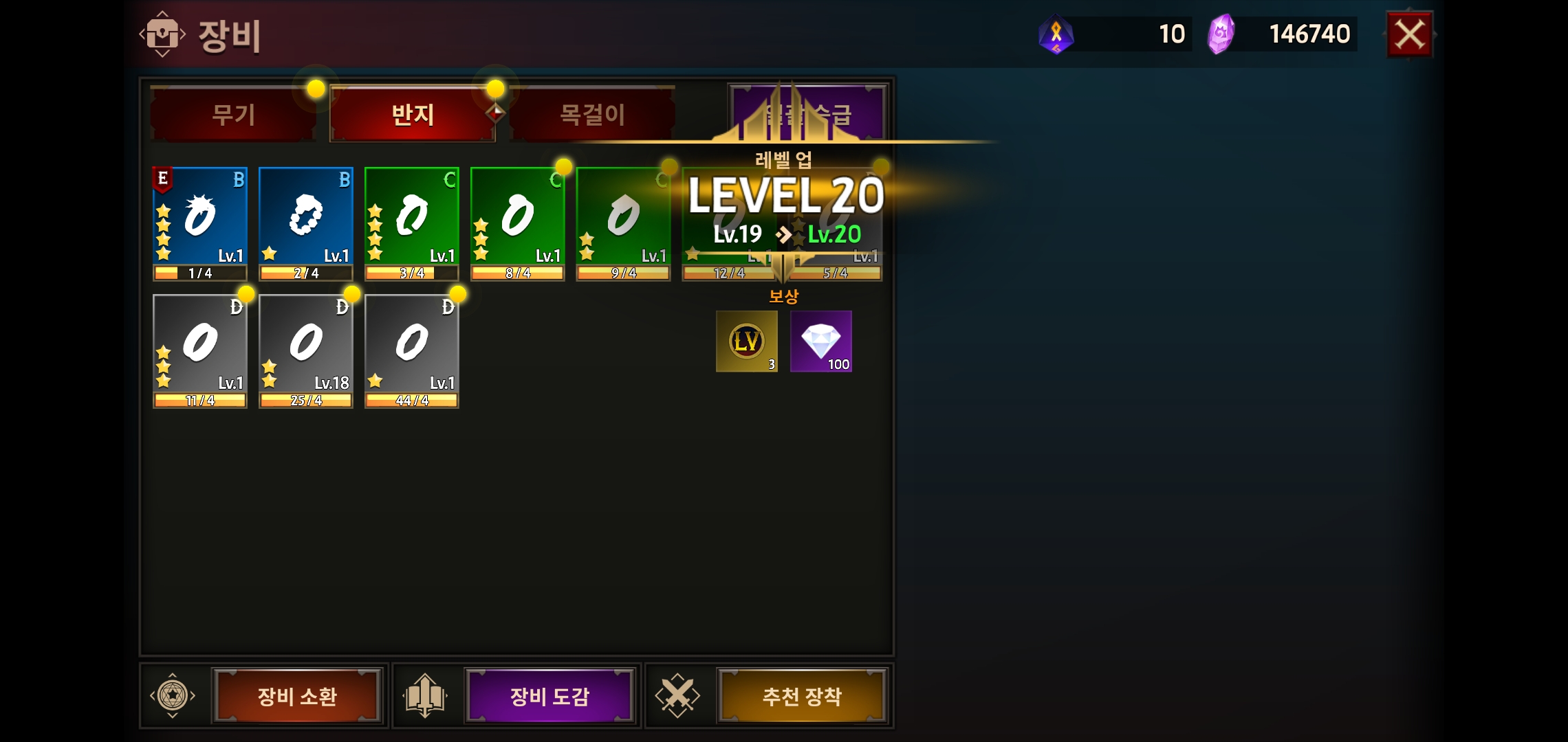 새로운 장비가 더 좋으면, 추천을 띄워줘서 바로 교체할 수 있거나