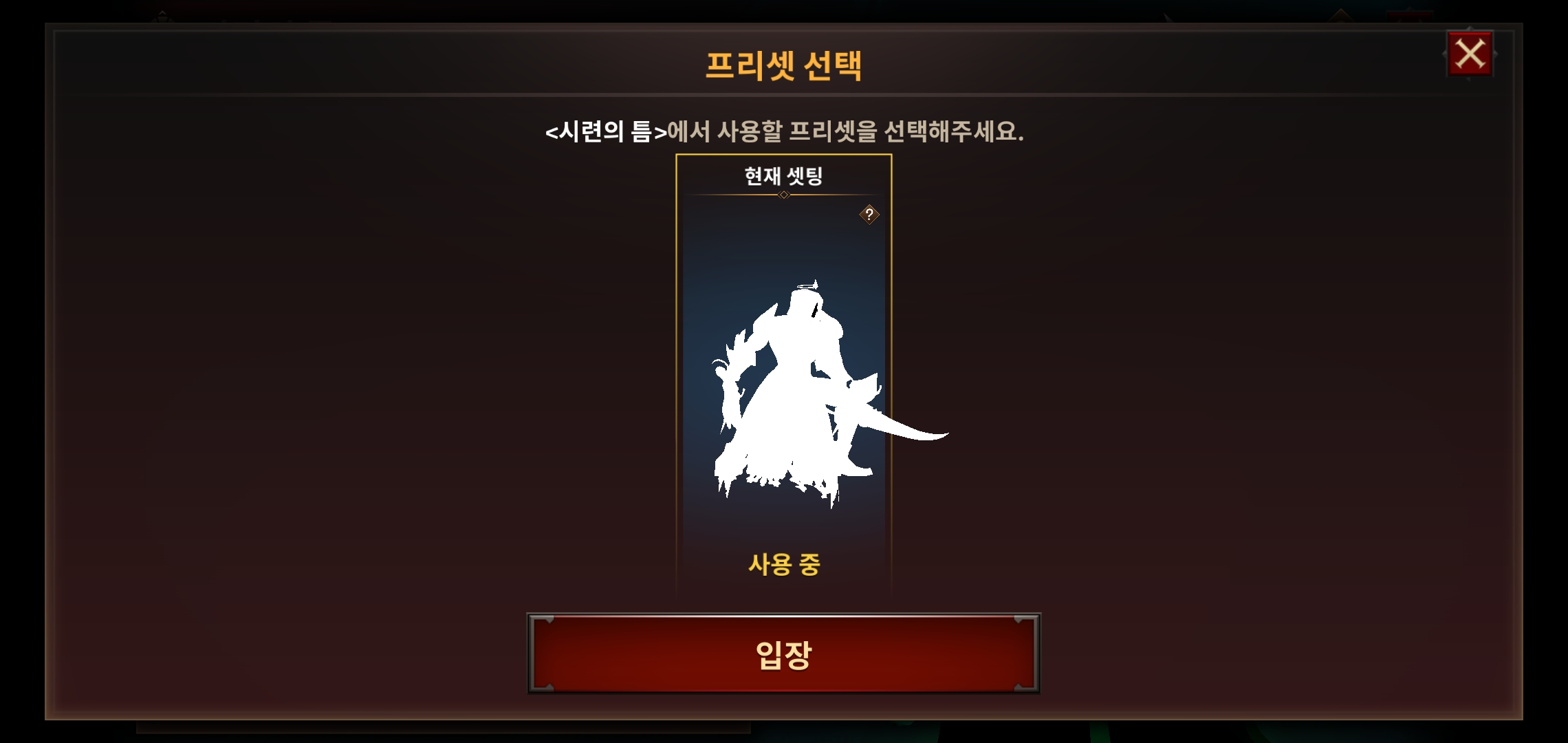 그리고 던전을 들어갈 때마다, 프리셋 선택 창이 떴는데...