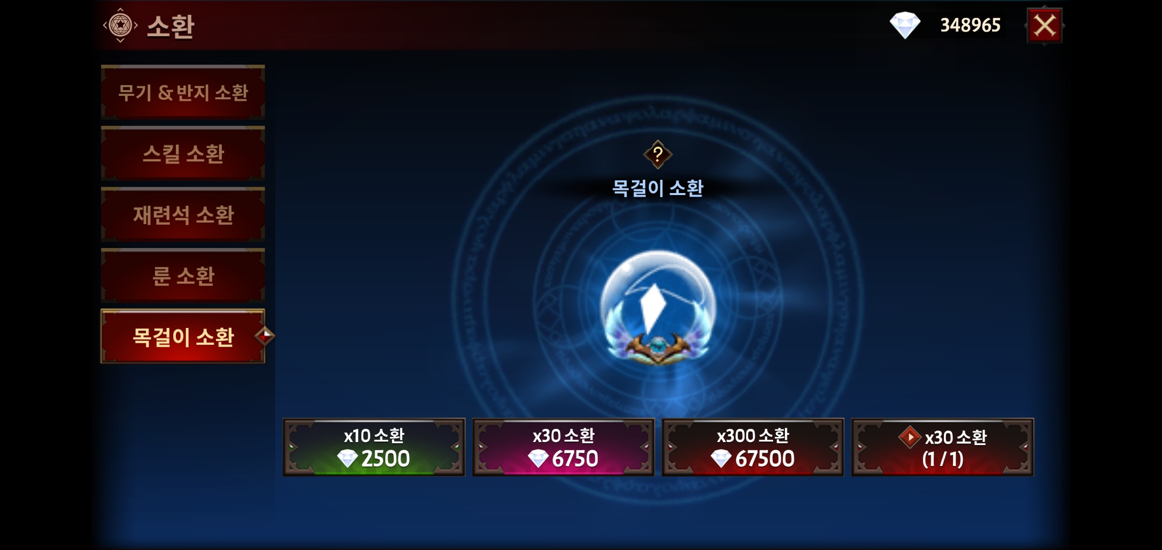 초반부 소환 : 목걸이 소환 x -> 나중에 추가되는 방식