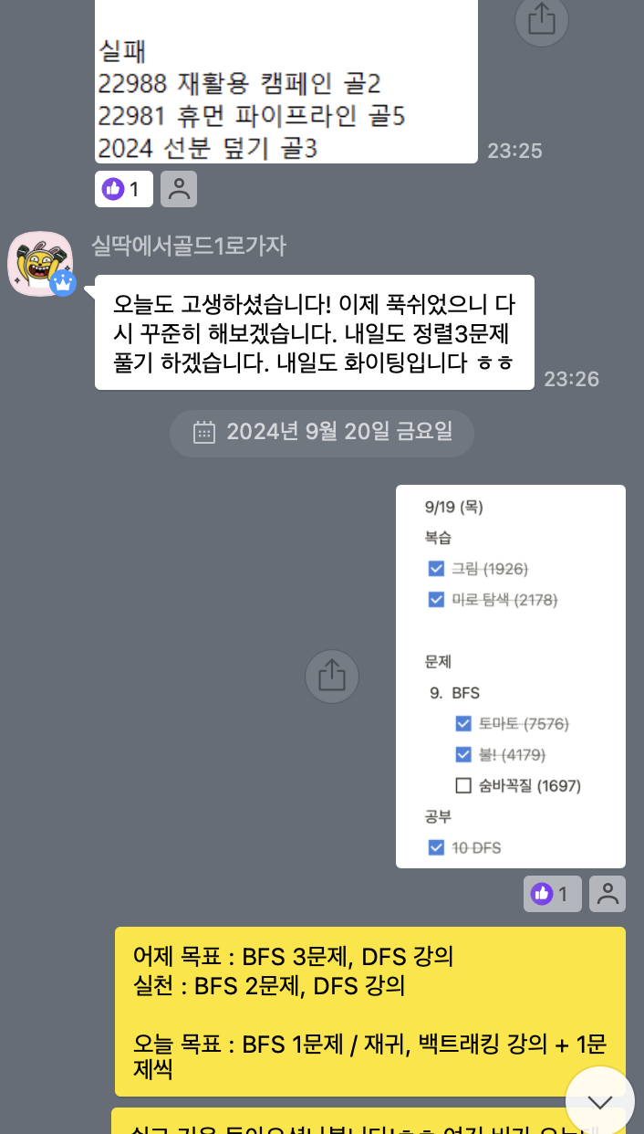 그 방을 들어가서 서로 각자 매일 공부 계획 + 진행 상황을 공유하기로 했었다